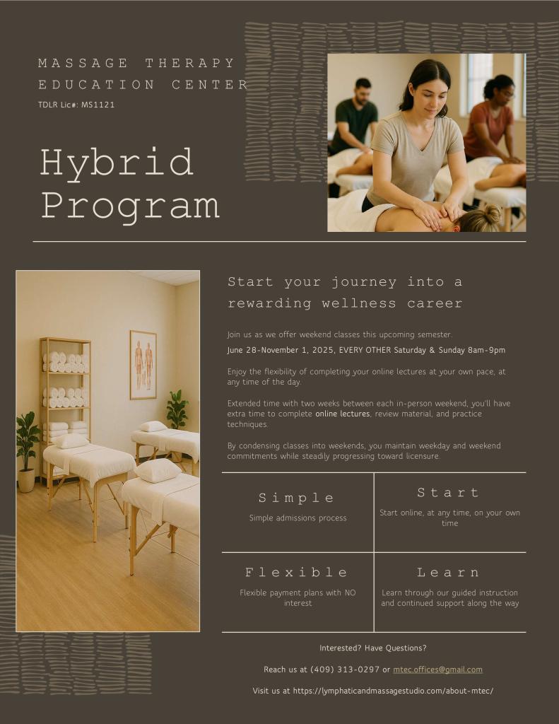 Lymphatic & Massage Studio is a professional massage studio located in Beaumont, TX providing a wide variety of therapeutic massage services as well as massage continuing education through Barbara White Seminars.